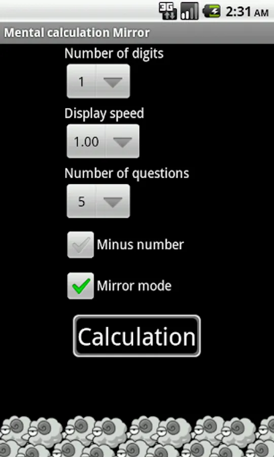 You can make a flash mental calculation by specifying the number of digits, display speed, number of questions, minus the presence or absence, the mirror character.