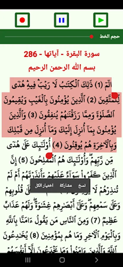 The Holy Qur’an with audio and the Holy Qur’an of Al-Madinah Al-Munawwarah by Sheikh Mishary Rashid Al-Afasy - Click Play to hear the sound and before leaving the audible image to another image, press Stop - no need to connect to the Internet after downloading it from Google Play