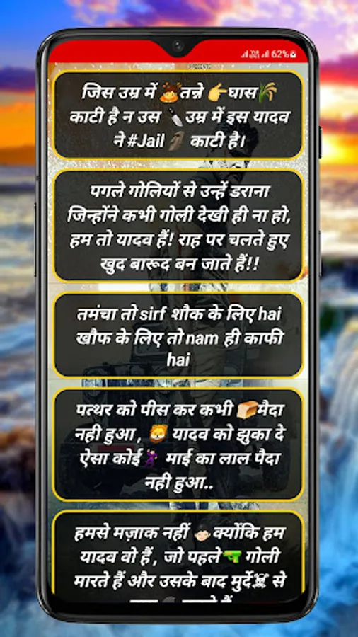 Very easy to use interface just swipe Up to Down to read the best live Yadav Attitude Status in Hindi and easily set that as your Hindi WhatsApp or FB Yadav status.