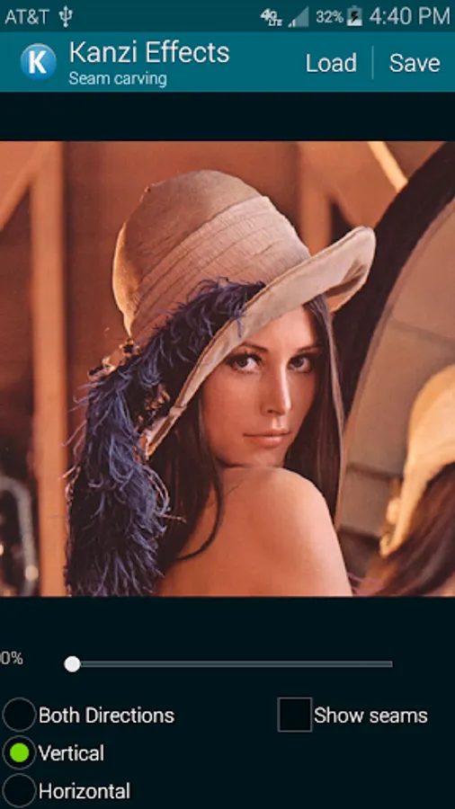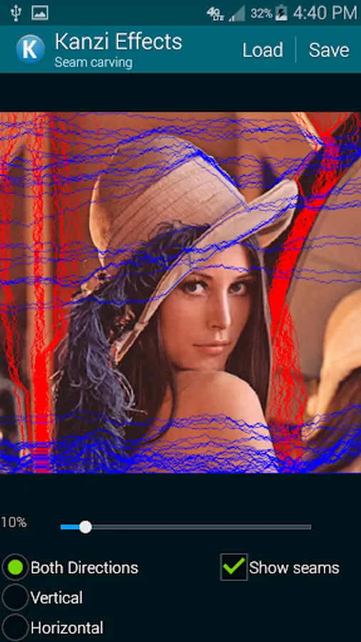 Drag the slide bar to indicate the percentage of lines to be removed ans see the result instantaneously. Use the 'Display Seams' options to see what pixels are being removed.