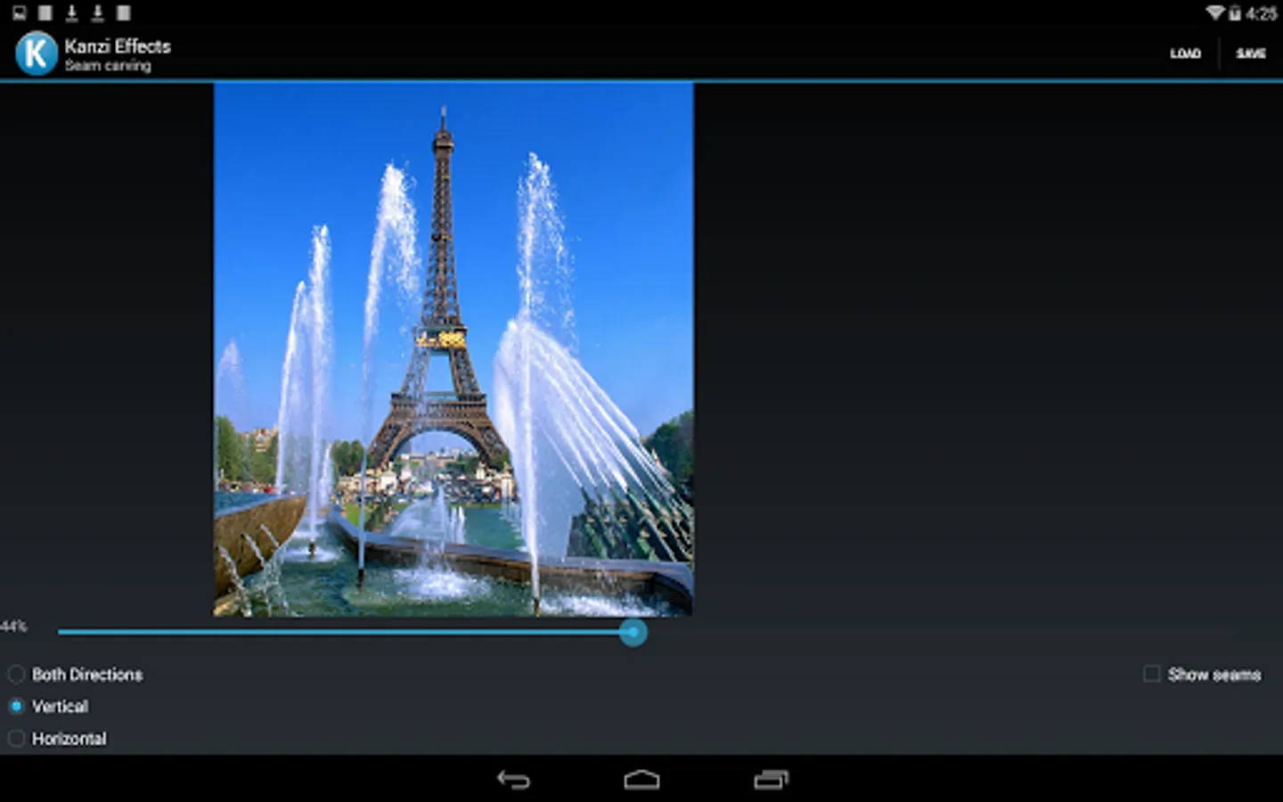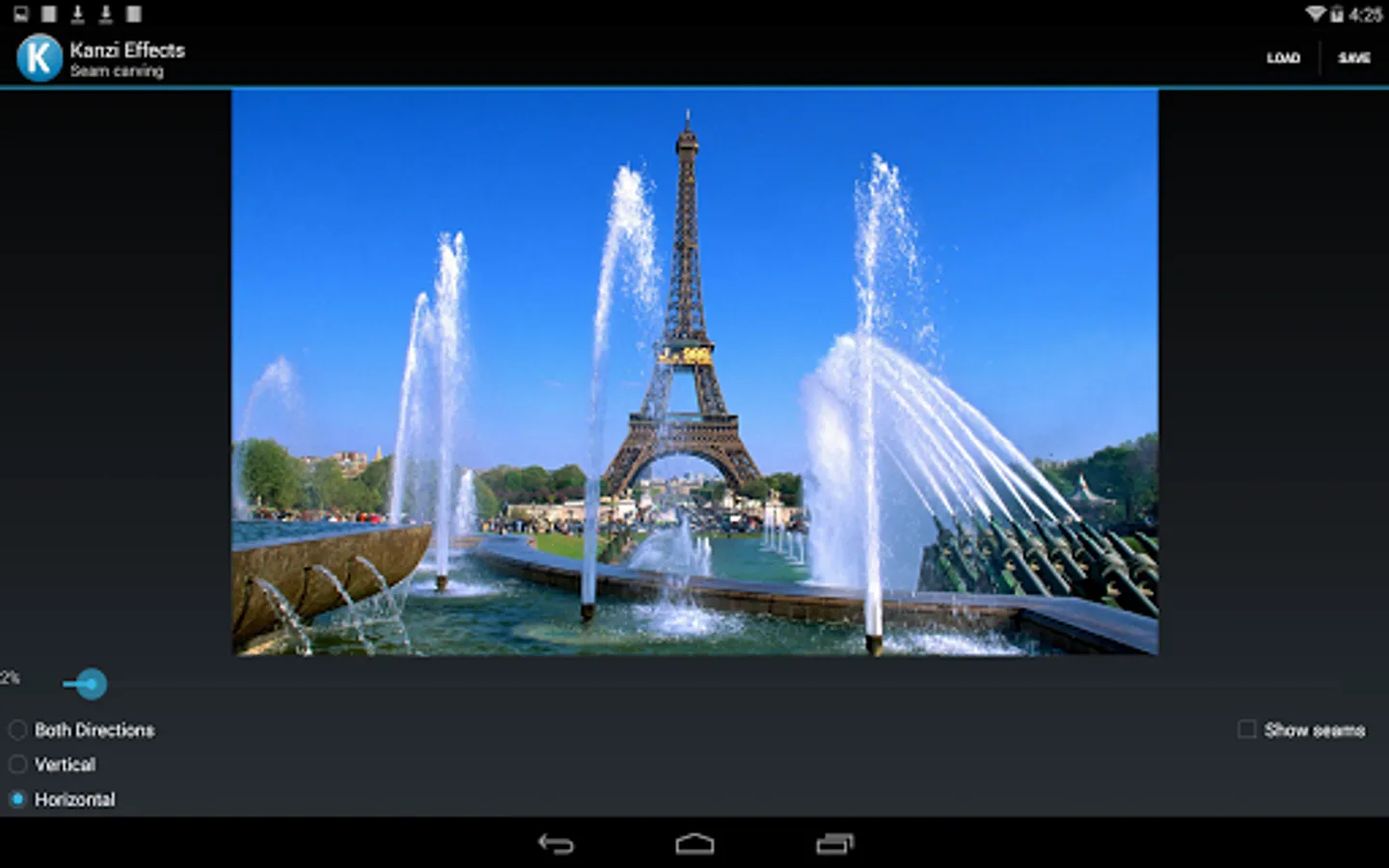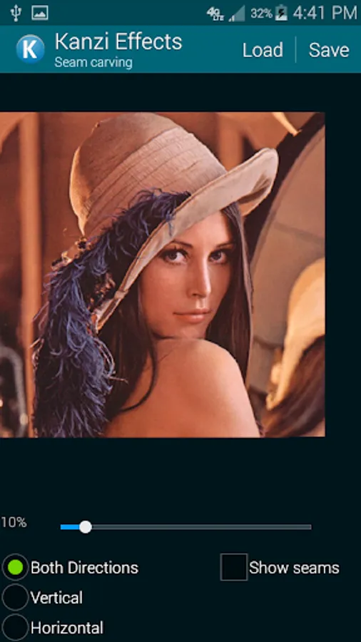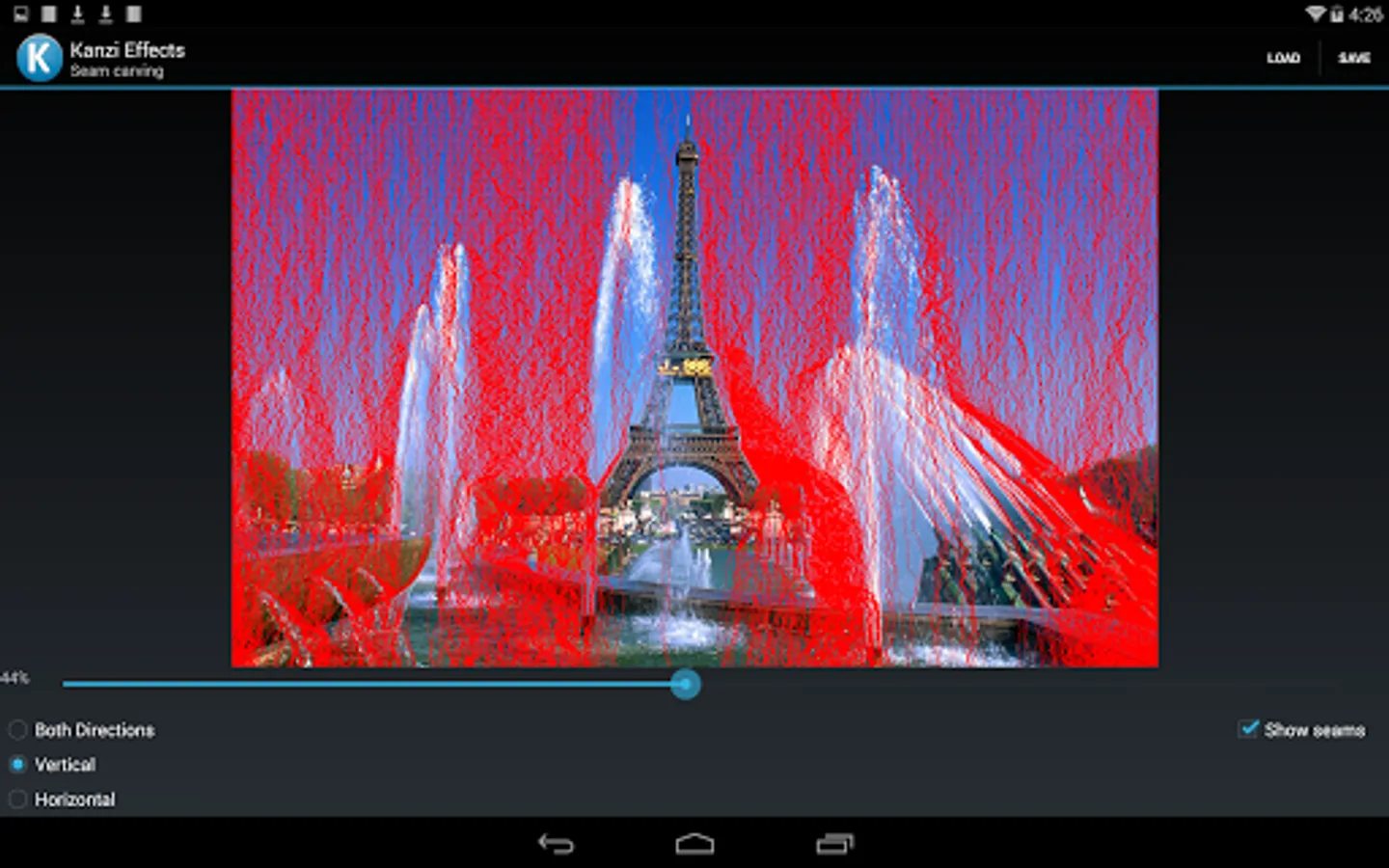 This app performs context aware resizing of pictures (a.k.a. seam carving). It analyzes a picture and computes the paths of least resistance (pixels lines known as seams) and removes them. It attempts to capture the most important features of a picture and remove the rest.