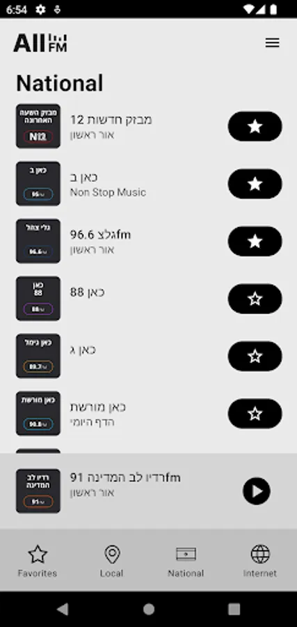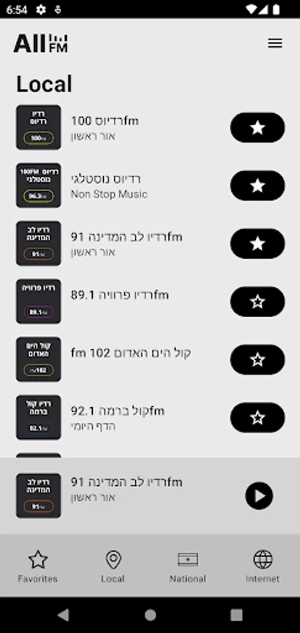 * Smart AI - The app will learn your listening habbit and will fix the order of the radio stations accordingly