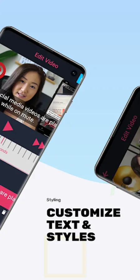 - Add text, captions or headlines to any part of your video at anytime.