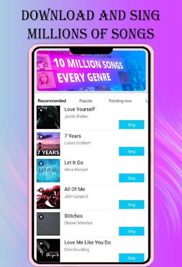 Sing a cappella, solo, duet, or with a group of friends or other singers. Share your voice, and dance along to hit songs. Use audio effects and video filters to look and sound your best while you make a music video to your favorite karaoke songs. You can even give live performances using the Sing Live feature!