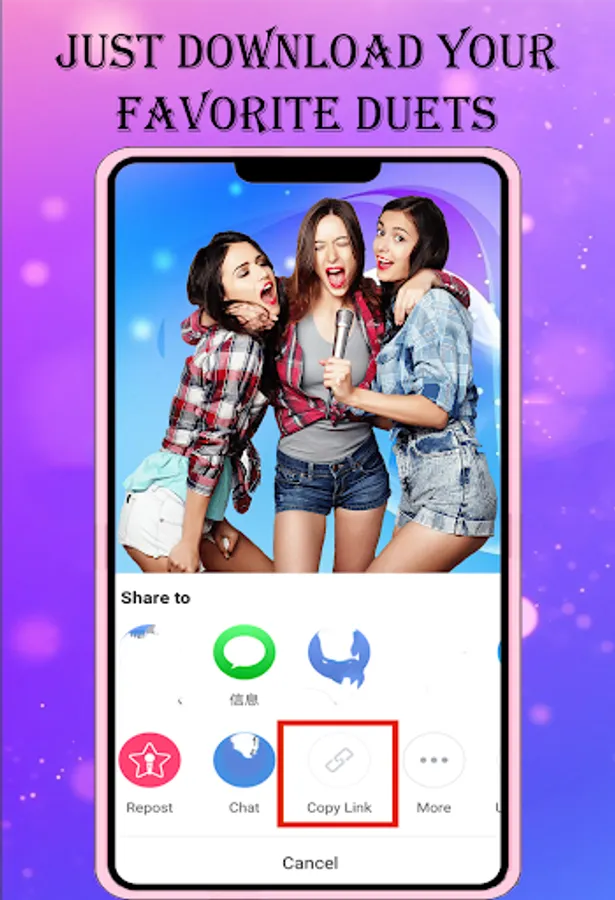 4) Or you can select ""Copy link"" and open ""Video Downloader for Smule"" and paste link to app