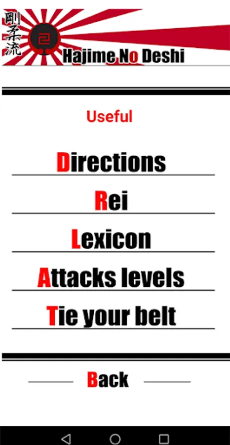 - A Lexicon part including the different Japanese terms and a practical part (eg how to tie your belt, etc.)