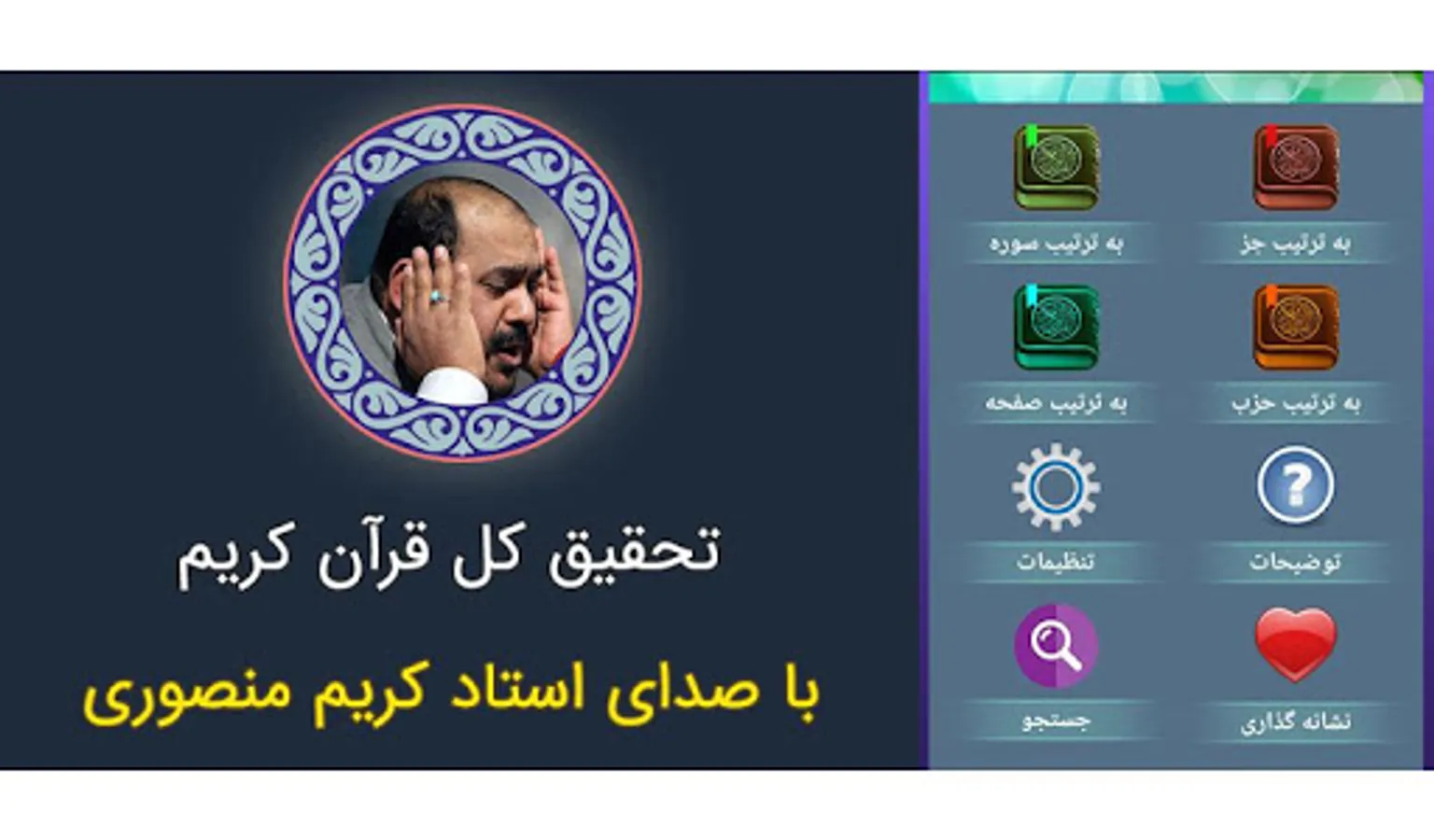 تحقیق Recitation of the research of the whole Holy Quran with the voice of Master Karim Mansouri by page, surah, jazz and party without the need for internet ★