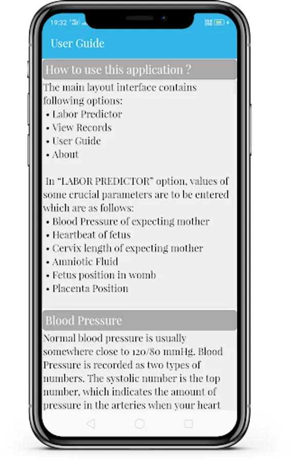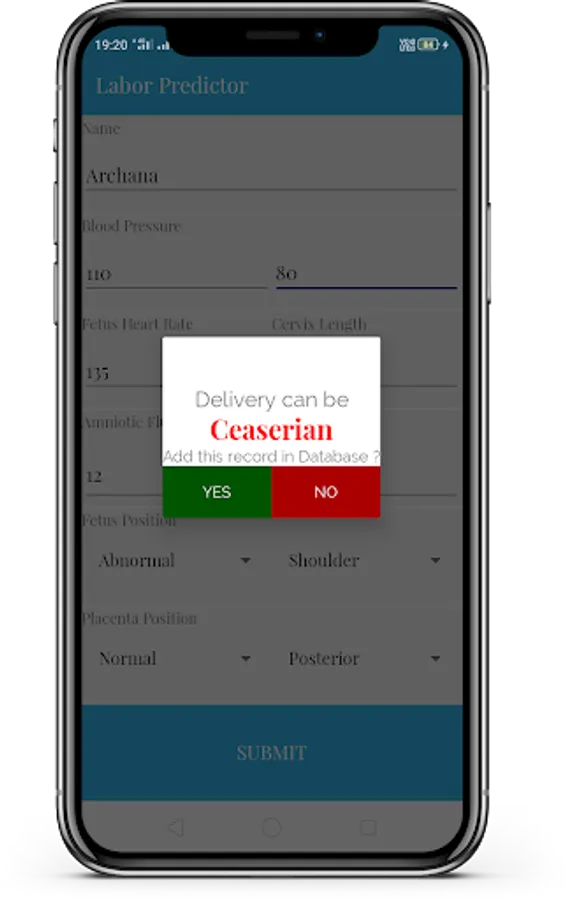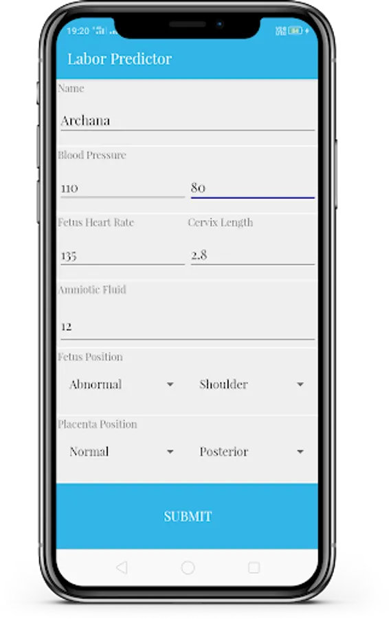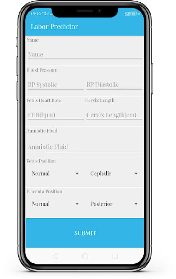 Labor Predictor can predict the type of your delivery based on your pregnancy reports. It just needs a few data which is available in your reports. App will predict the type of delivery as Normal or Caesarian. The type of data needed for input is explained in the user guide.