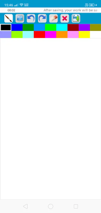 Sometimes you're at your best and paint the finest, beautiful picture. Save your creativity by clicking the "Save" button. Your work will be saved in "Paint" folder in your phone memory.