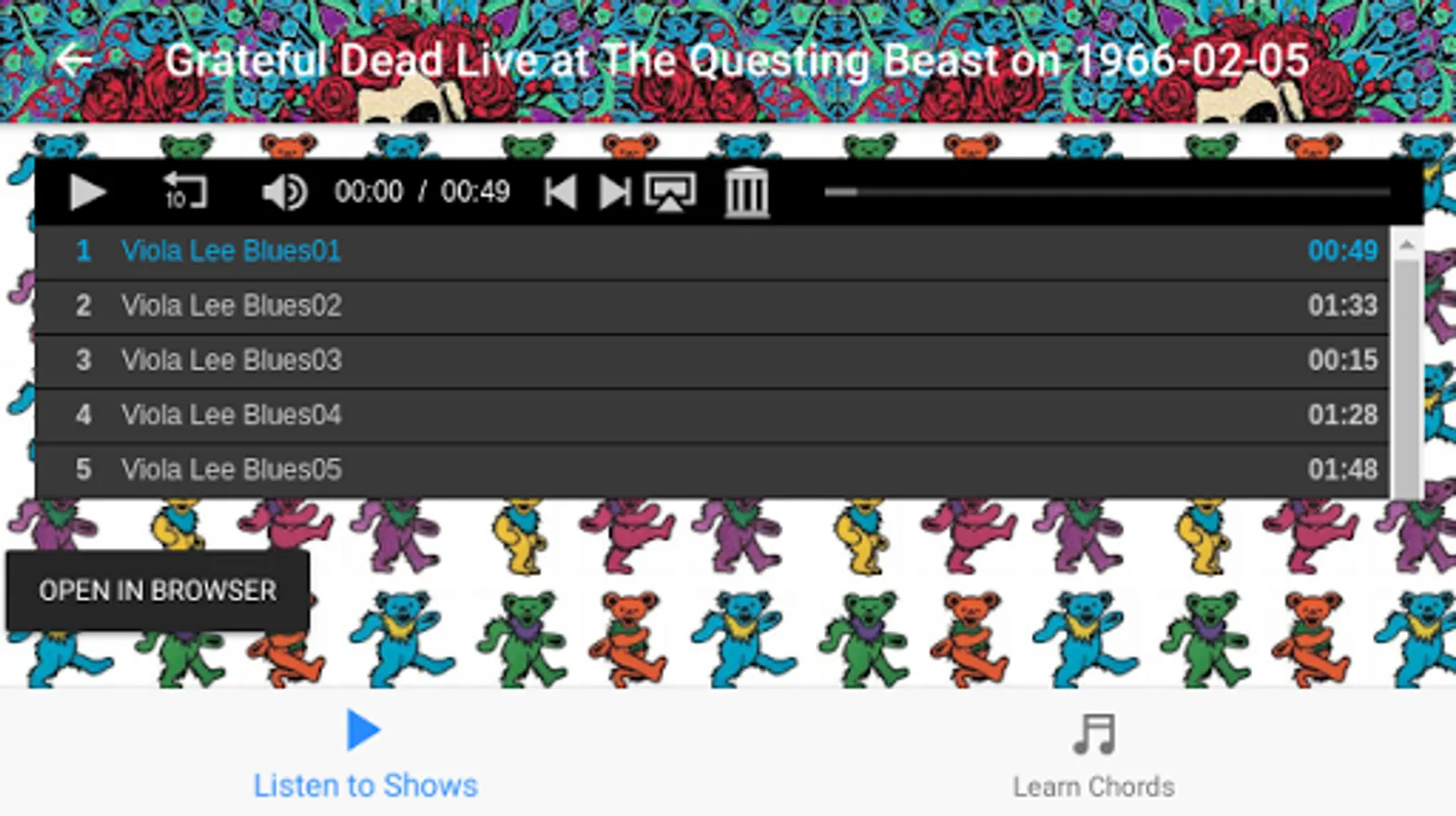 View and listen to over 1000 Grateful Dead live shows from archive.org. Search and sort by date, location, songs played, and more.