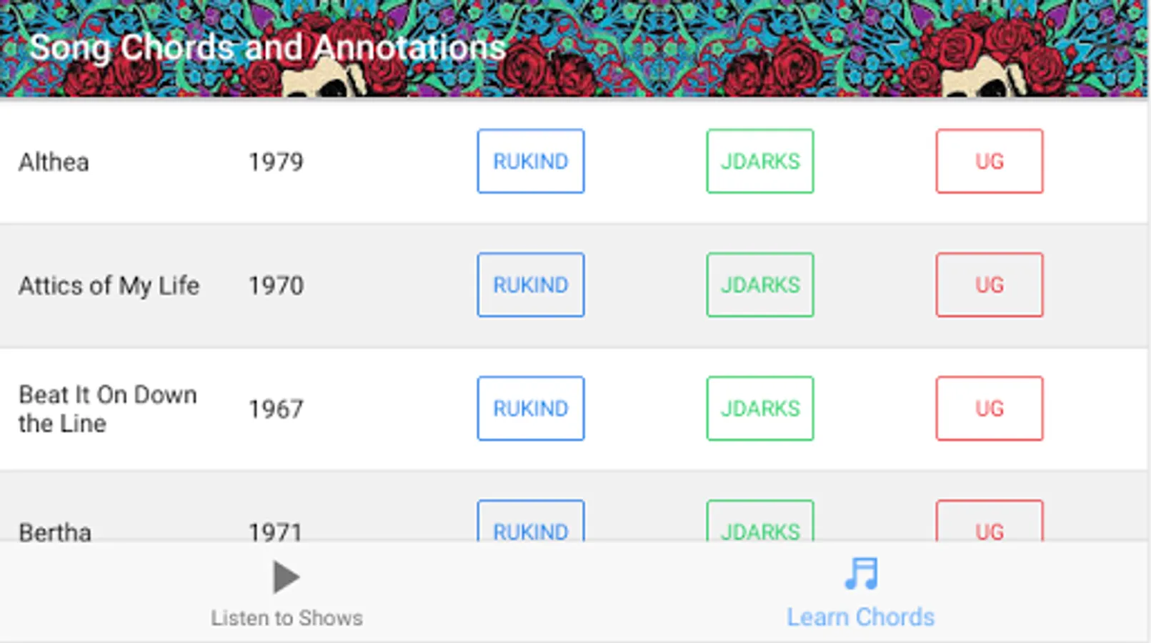 Learn the chords and lyrics of your favorite Grateful Dead songs with ready to go links to RuKind, JDarks, and Ultimate Guitar