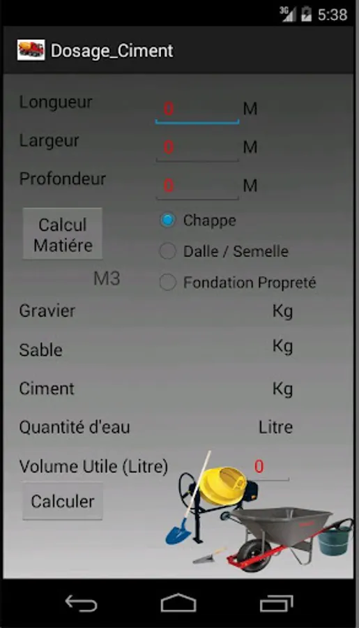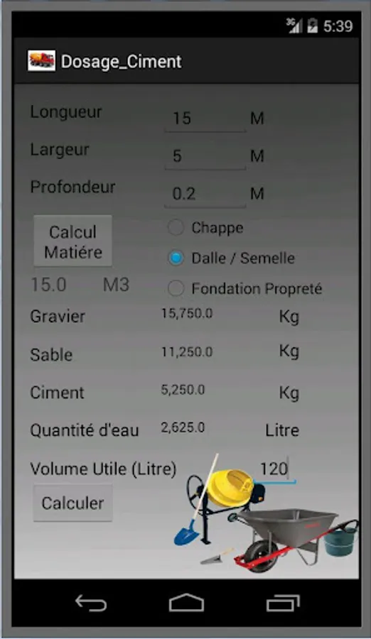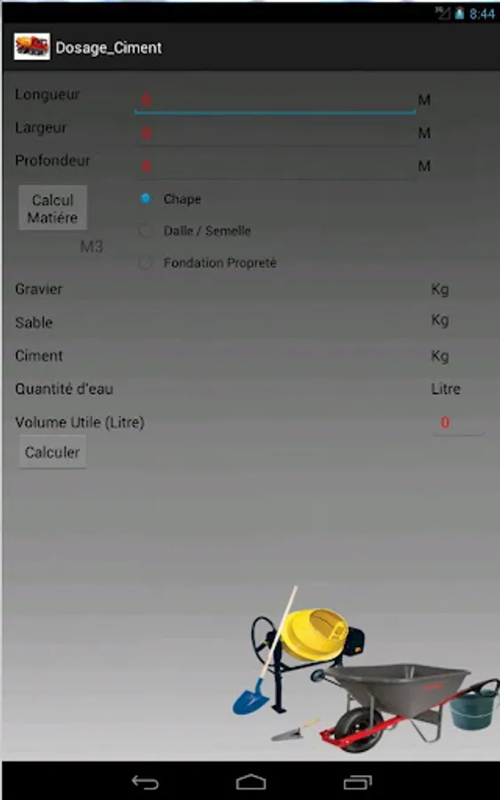 This calculation cement dosage for the concrete, concrete, tile, mortar, screed, masonry, concrete and clean foundation.