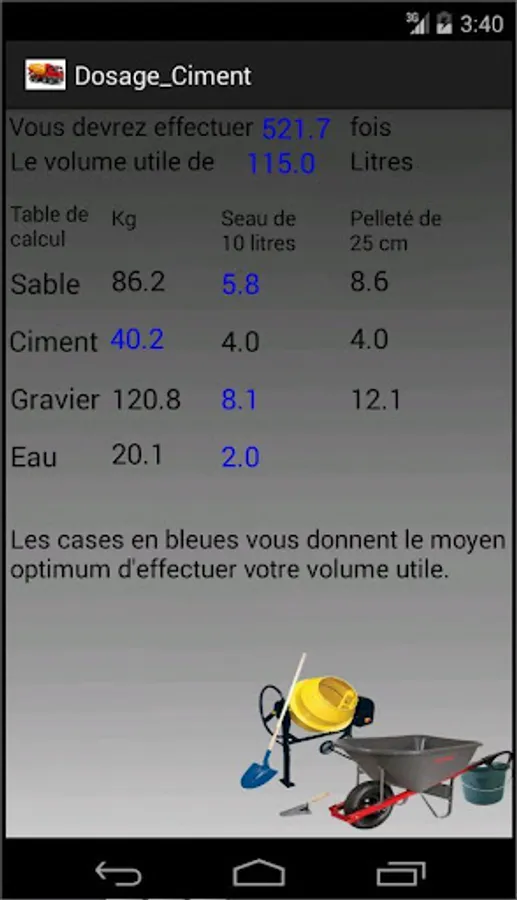 - Depending on the useful volume that serves the mixture (wheelbarrow, bucket, mixer or trough) count the number of times to perform the work.
