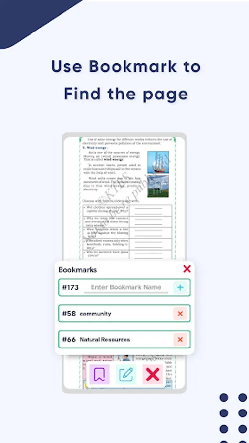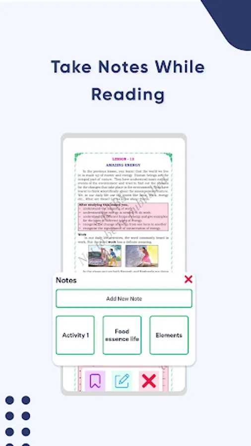 You can note down the essential points as simple notes in this app while studying, which is a great advantage for you. By using the bookmarks feature you can easily find the areas and pages where you left off.