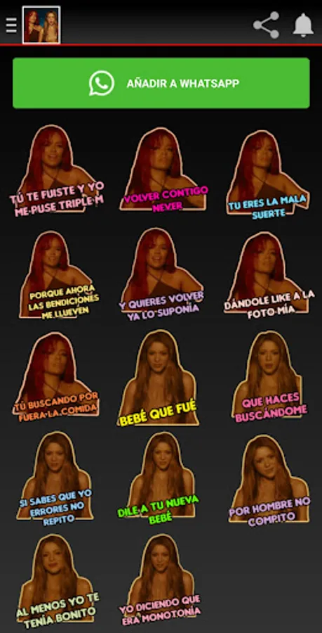 Karol G and Shakira stickers is a free application, in which you can use to talk in a more fun way in your chats or groups of friends, they have a variety of funny and funny phrases.