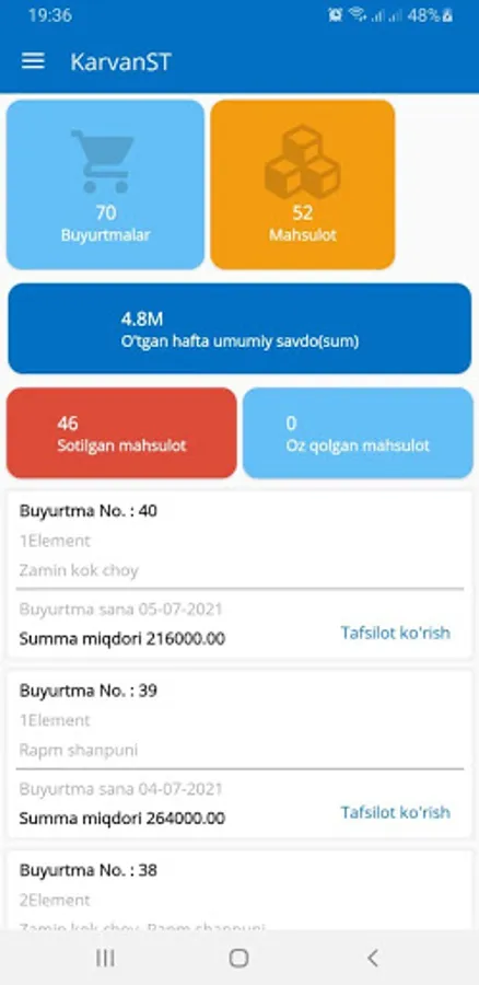 Karvan Ulgurji oziq-ovqat, xo'jalik va boshqa barcha mahsulotlarini sotuvchilik boshqaruv tizimi