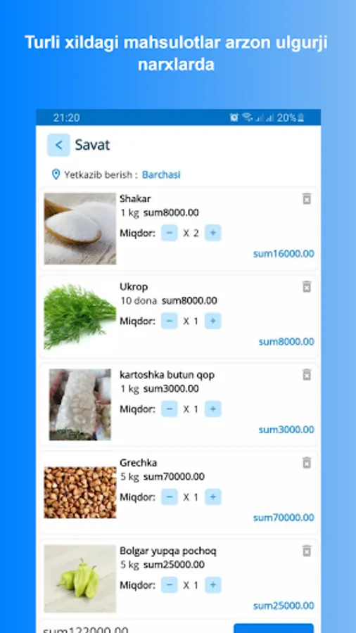 Ulgurji Oziq-ovqat, xo'jalik va boshqa barcha mahsulotlar onlayn marketi