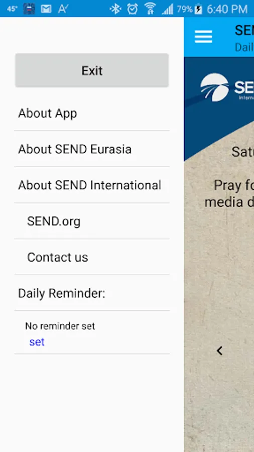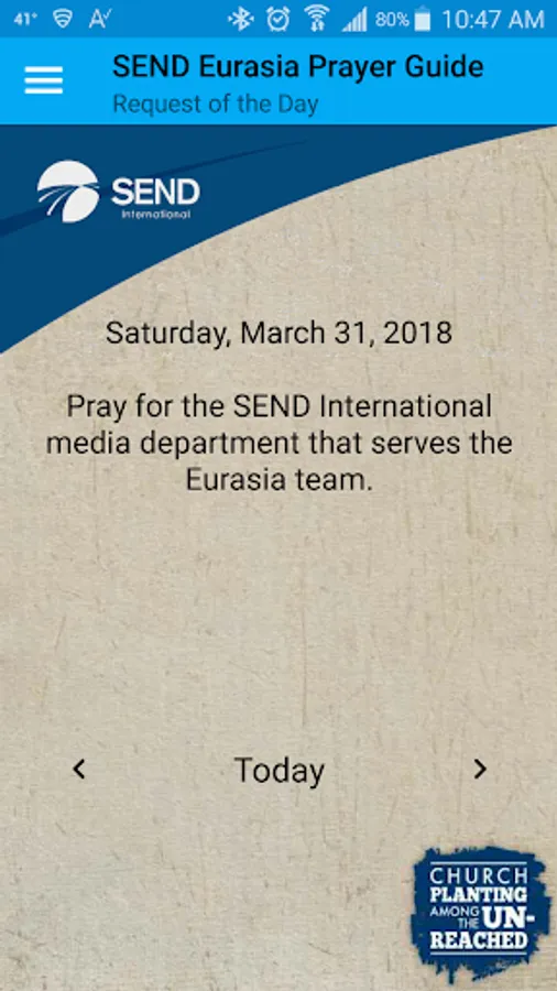 Pick a time for daily reminders to pray for SEND ministries throughout Eurasia (Russia, Ukraine, Central Asia). New daily requests are downloaded every two months.