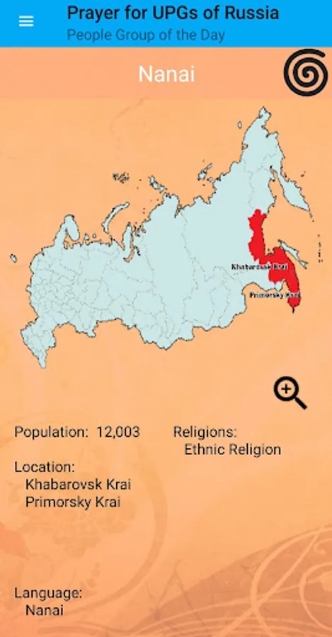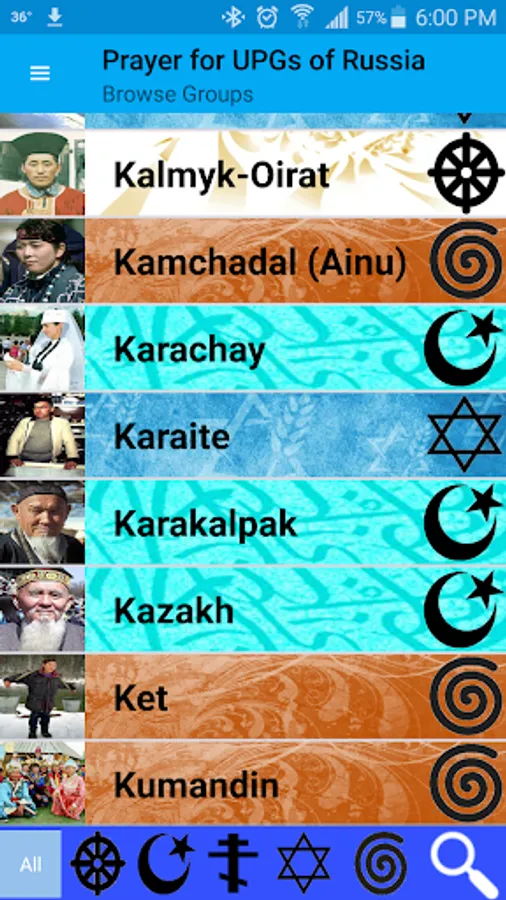 Browse (and even search) UPGs (unreached people groups) of Russia, see who and where they are (including a photo and a map for each group) and read a little about their culture and how to pray for them. Schedule a daily reminder to pray for the group of the day. Users can switch between English, Ukrainian and Russian language. The database continues to be updated and currently includes 115 groups. The app collects no personal data.