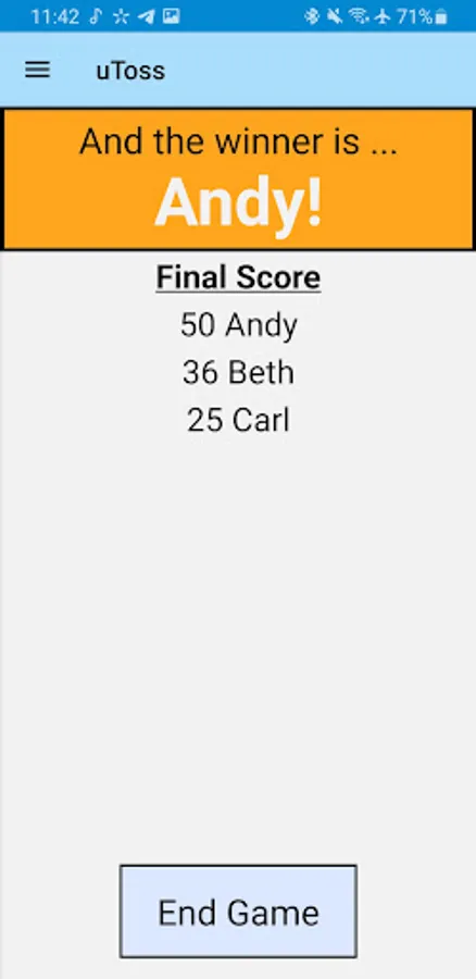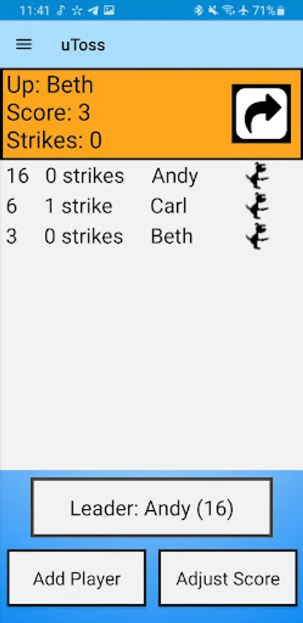 uToss has specific rules, which are built into this app, and it will track the scoring of every player, even during a “Toss-off” (tiebreaker).