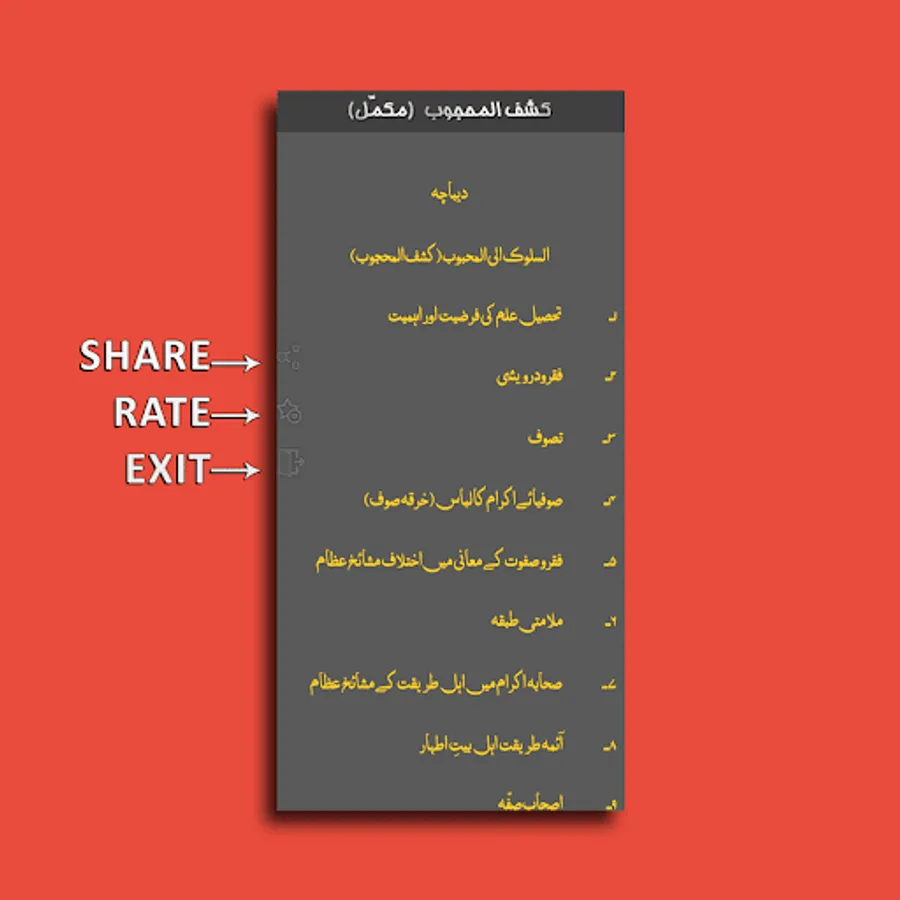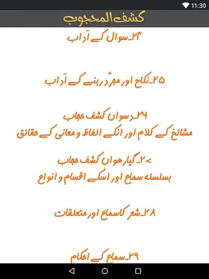 The Kashf ul Mahjoob - Android App provides access to the complete text of the Kashf ul Mahjoob in a mobile-friendly format. The app includes a number of features that make it easy to use, including: