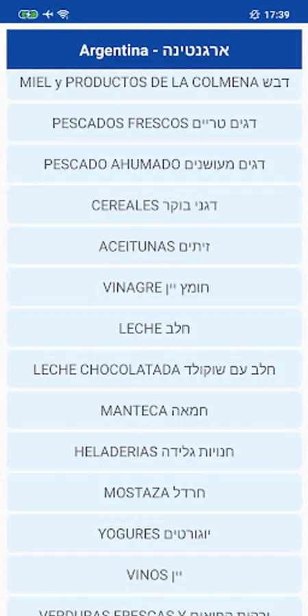 The app contains the lists of Argentina, Bolivia, Brazil, Peru, and Chile classified by categories.