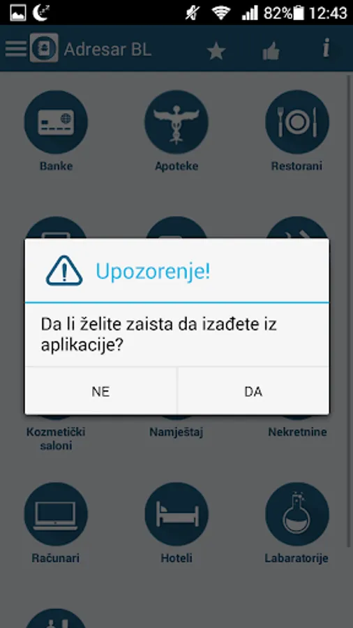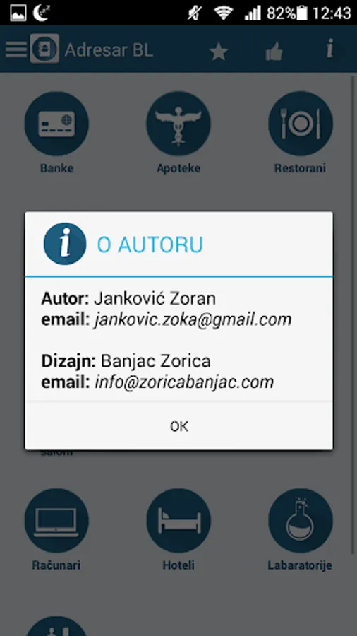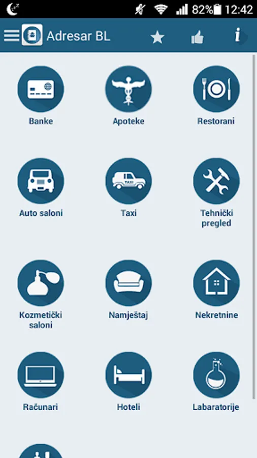 Companies Banja Luka is an android application that gives certain information (name, address, telephone number and location) from Banja Luka. Companies are organized into several categories. Depending on the category selected registered firms appear in the listing, each company appears with the logo, name, and address and clicking on a particular company from Listing