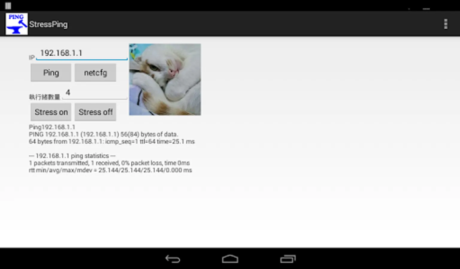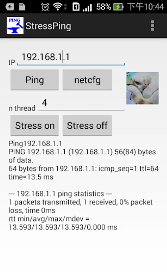 1. Enter target IP, press [Ping], if it appears 1 received, representatives ping to the target IP.
