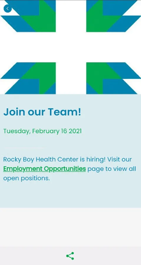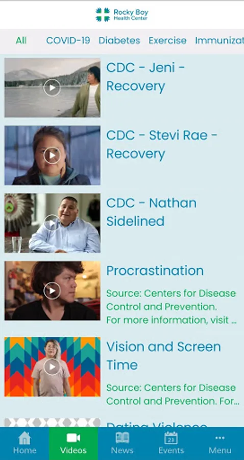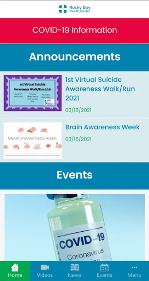 The Rocky Boy Health Center app is the official mobile app for Rocky Boy Health Center. It promotes health and wellness among the American Indian community in Rocky Boy, Montana, through announcements, articles, events, videos, and other content.