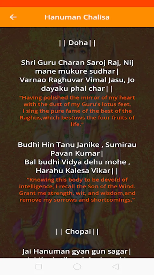 The Hanuman Chalisa (Hindi pronunciation: [ɦənʊmaːn tʃaːliːsaː]; literally Forty chaupais on Hanuman) is a Hindu devotional hymn (stotra) addressed to Lord Hanuman. It has been authored by 16th-century poet Tulsidas in the Awadhi language, and is his best known text apart from the Ramcharitmanas. The word "chālīsā" is derived from "chālīs", which means the number forty in Hindi, as the Hanuman Chalisa has 40 verses (excluding the couplets at the beginning and at the end).