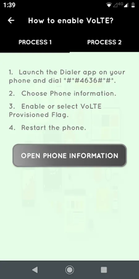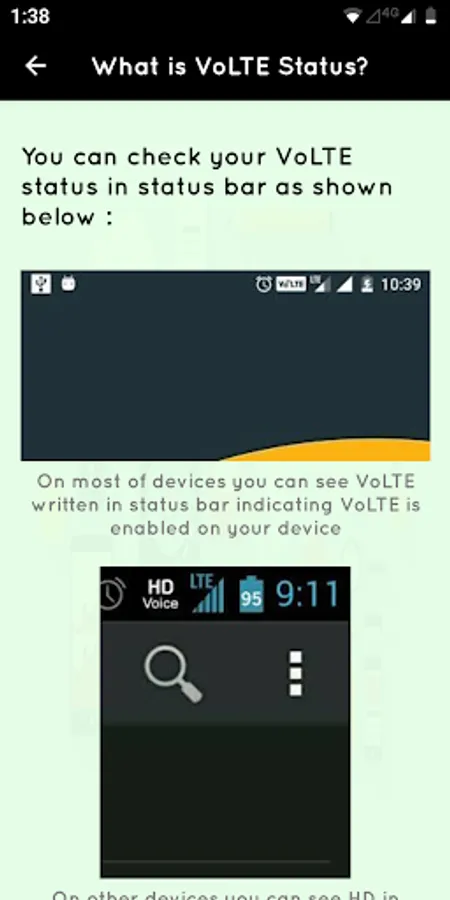 This app will check VoLTE status of your phone which is required to make and recieve calls for VoLTE network provider.
