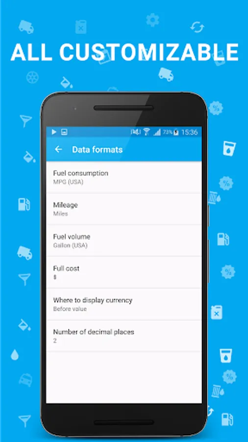 - Fuel Consumption (MPG, l/100km, km/l, m/l)