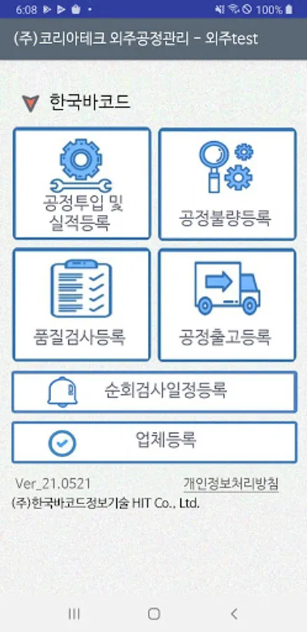 코리아테크 외주공정을 관리하는 어플리케이션입니다.