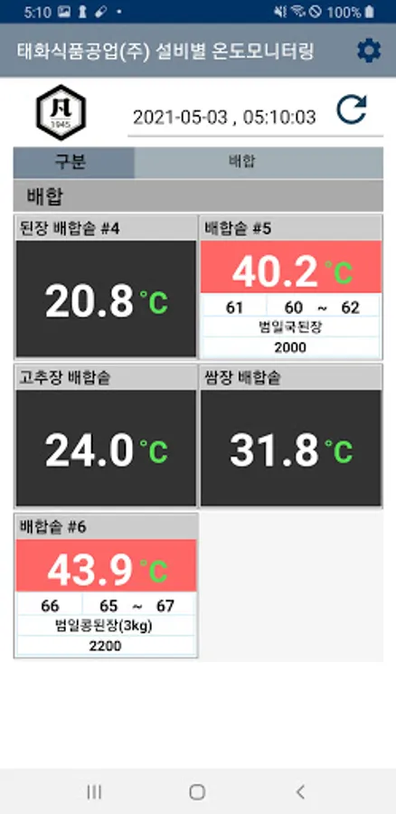 About 태화식품공업(주) 설비별 온도 모니터링