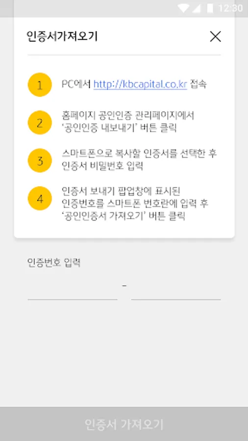 1. For KB Capital online loan consultation and loan agreement, some services require a joint certificate, and you can copy the joint certificate you are using to your smartphone through the joint authentication center on the KB Capital website.