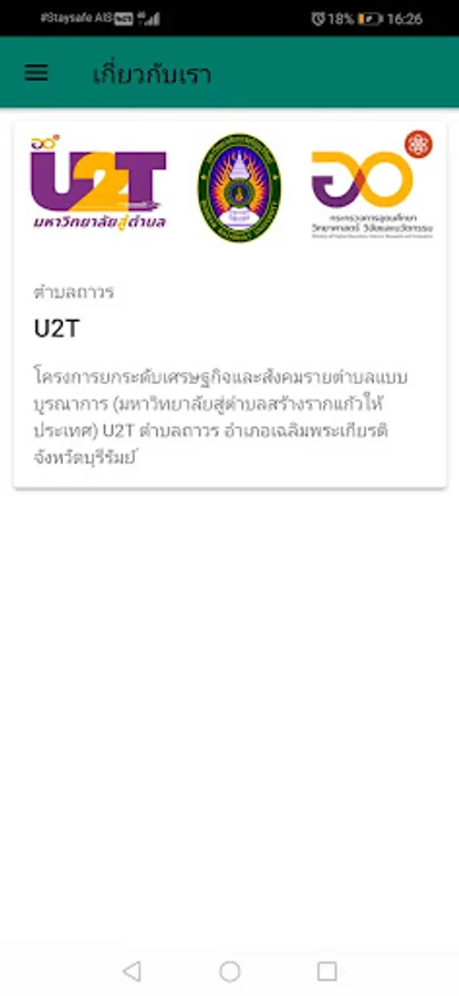 Integrated Subdistrict Economic and Social Upgrading Project (University to the sub-district, building a glass root for the country) U2T Thaworn Subdistrict, Chaloem Phrakiat District Buriram Province