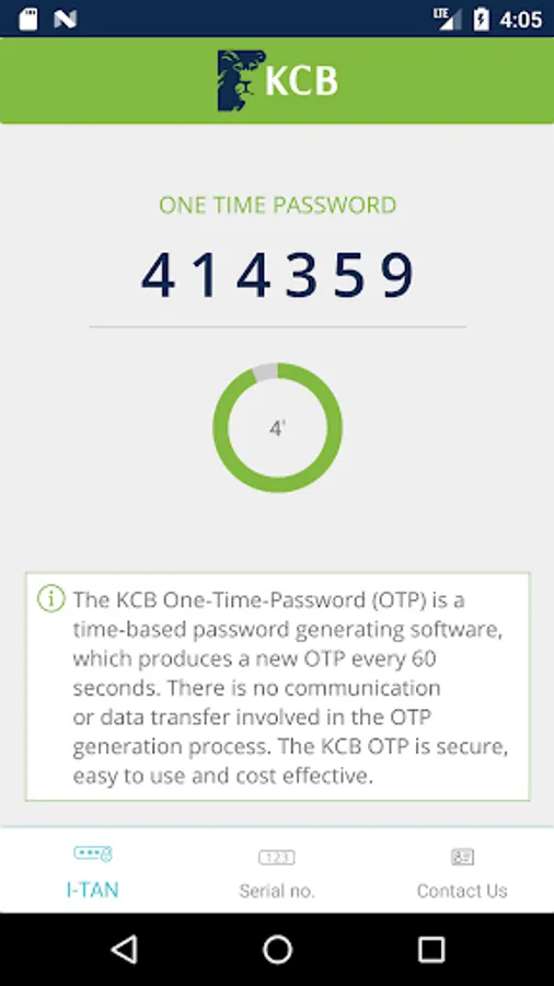 KCB ITAN allows you to use a mobile phone as a token for login to online banking. Download the ITAN app and connect it to your internet banking profile once you have logged in. It is secure and convenient and you do not need to carry many devices to secure your internet banking.