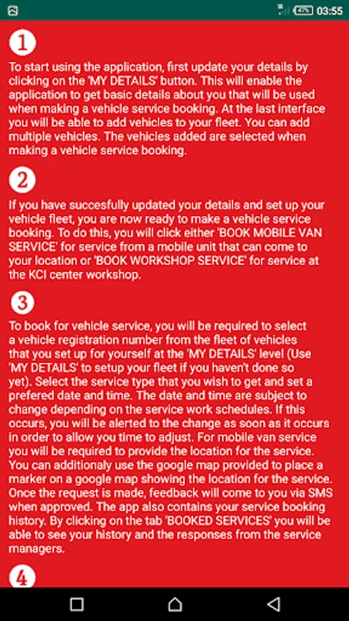 This app allows you to book for vehicle service at the gold accredited KCI ISUZU service center workshop. The service center is located at Eastgate road off Mombasa road.