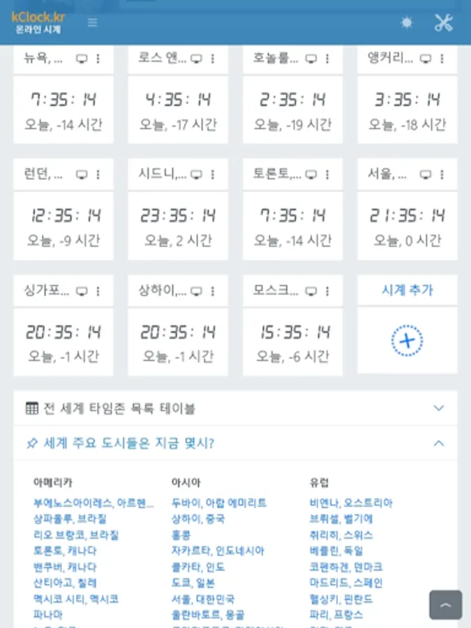 2. Mini clocks representing major cities can be added or deleted as desired by the user, and the displayed location can also be changed. And clicking on the city name takes you to a separate page with an online clock.
