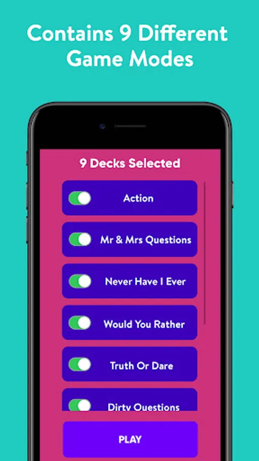 Please note this couples game has been made for adults only as it contains dirty questions. Each game mode contains around 50 questions/challenges.