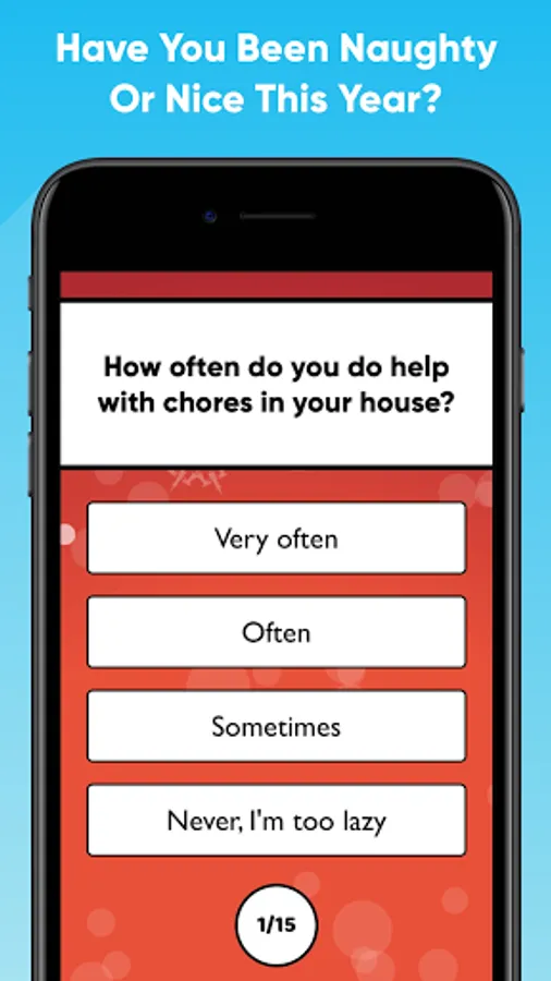Take turns playing this naughty or nice detector xmas quiz with your family. No photo or scanning required .If you love Christmas you will love this app!