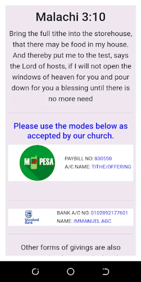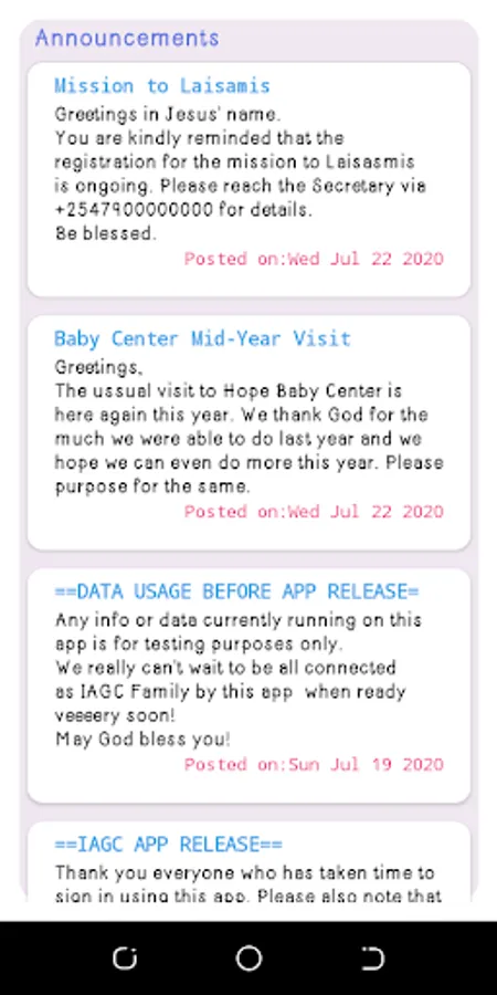 This is a church app that aids in promoting interconnection between the church members and the leadership. It helps to coordinate activities easier by sharing relevant data and information within the shortest time possible.It allows the members to give feedback, record attendance, book services, read announcements, refer past sermons, easily access the church website and social media pages.