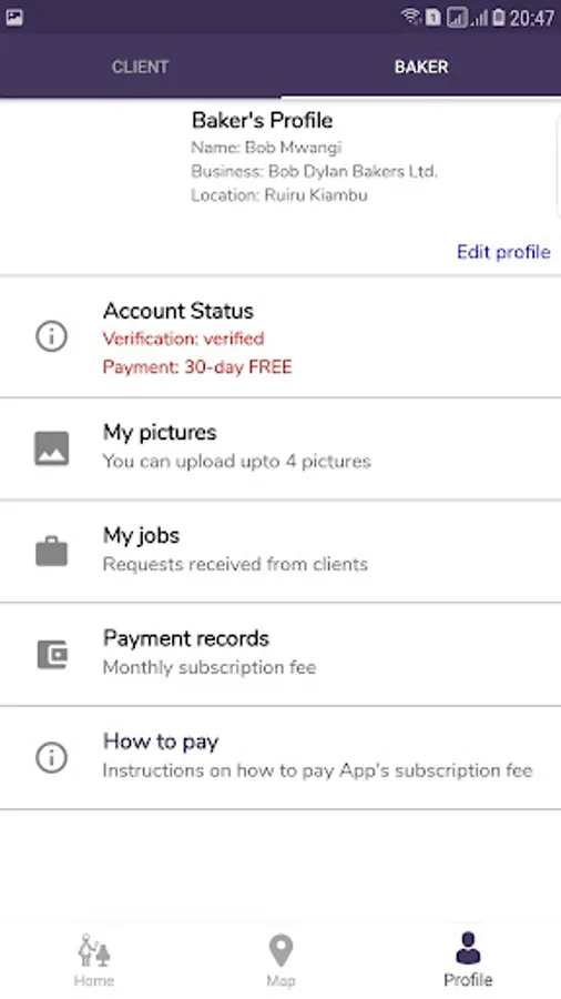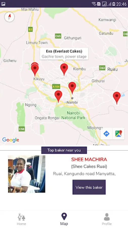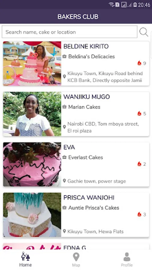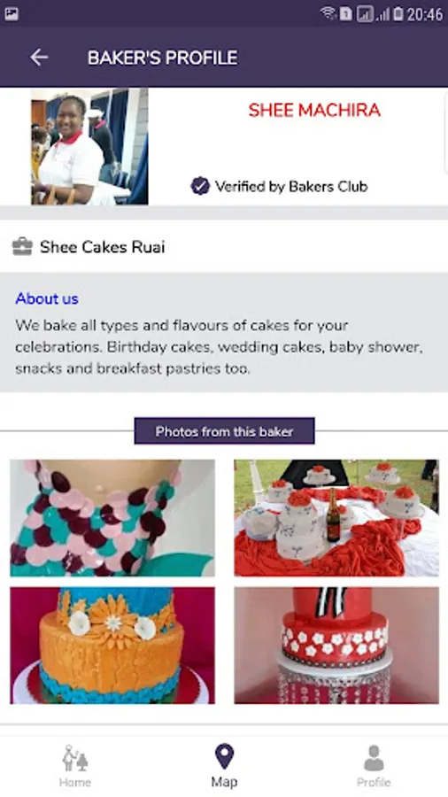 The Bakers Club App enables you as a client to see which baker is near your location, you get their bio data in brief, as well as a glimpse of their portfolio, then you can go ahead and contact them to discuss your order.