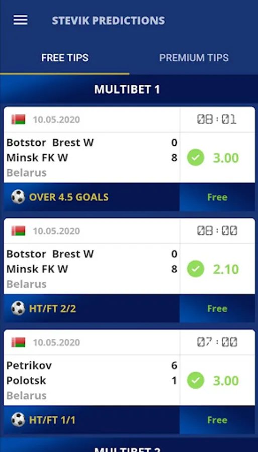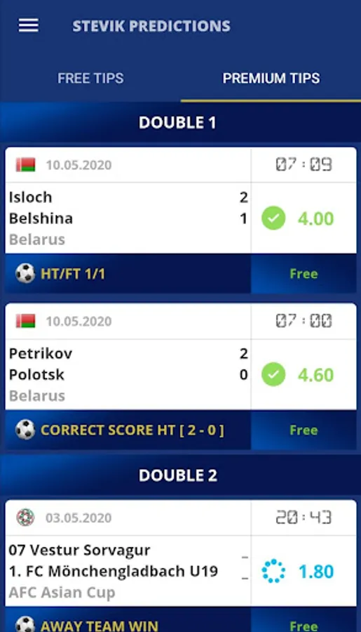 - The Free Advice section which offers Football, Tennis or Basketball matches.