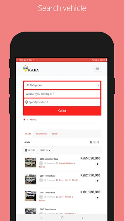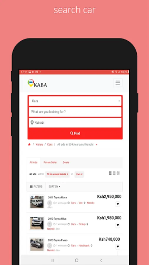 Kaba Motors includes among its sources hundreds of Kenyan based new and second hand car traders, car dealerships, cars for sale by owner and other options.