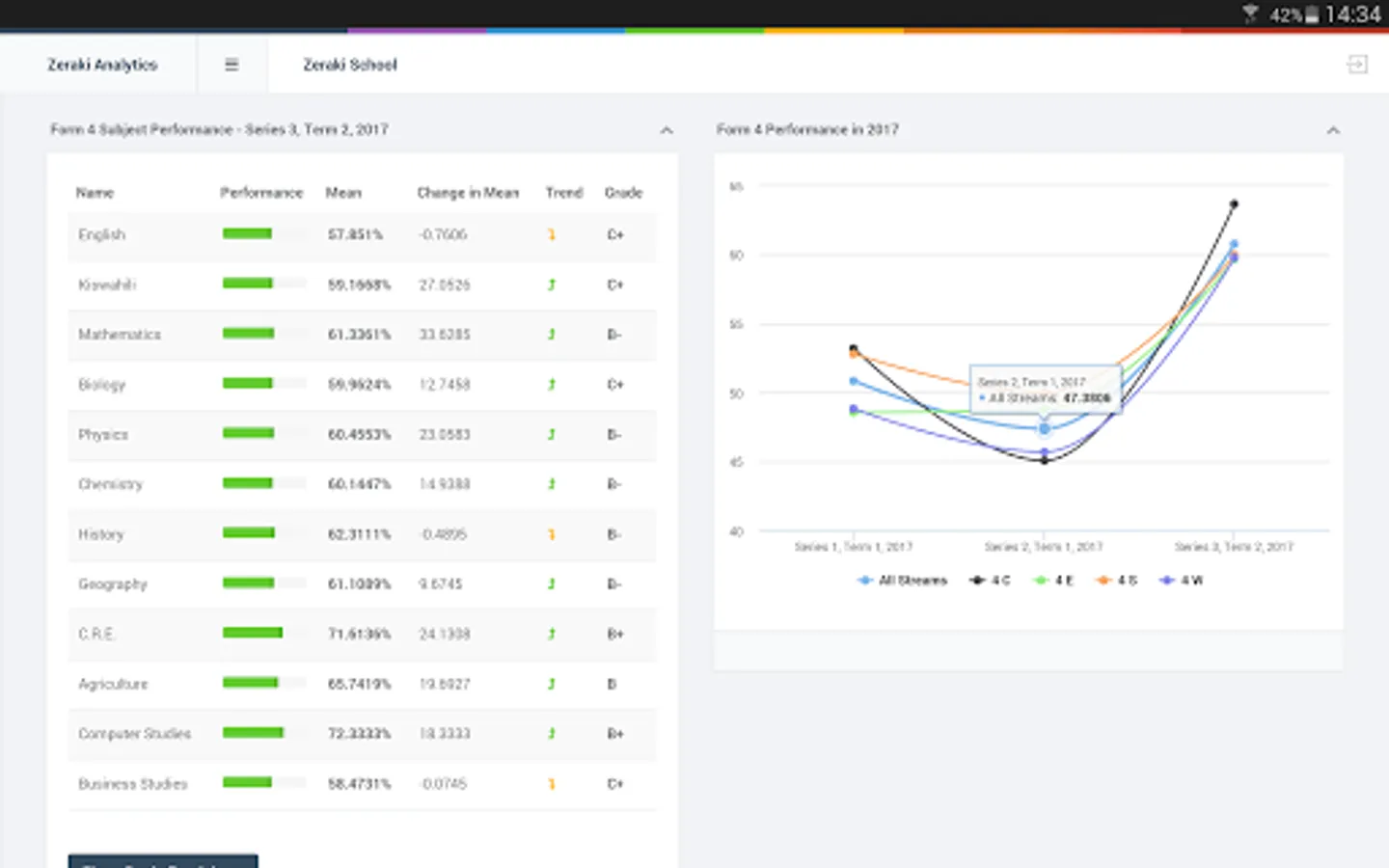 Zeraki Analytics helps schools analyze academic performance, generate informative report forms and share analyses of academic performance with students and parents. Zeraki Analytics helps schools make sense of academic data faster and observe interesting patterns that wouldn’t be apparent from looking at tabular data. Because you spend a lot of time preparing students for exams, administering and grading exams, Zeraki Analytics gives you a new and easy way to analyze and visualize exam results. From a mark sheet to a variety of graphs and pre-formatted tables, Zeraki Analytics makes it easy for teachers to focus on their work.