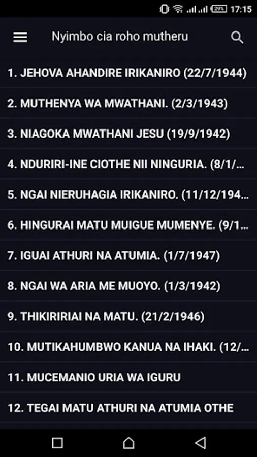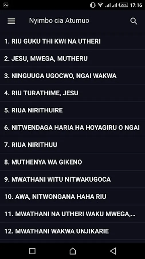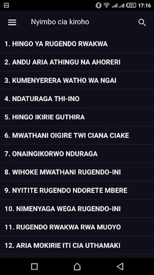 Nyimbo cia uhoro wa Ngai is an android application that delivers