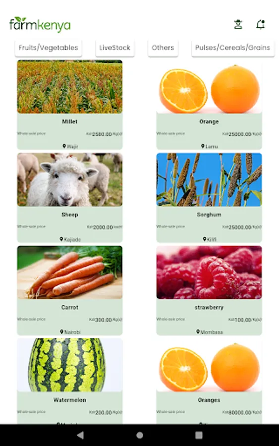 FarmKenya makes it easy for a farmer to upload their farm products to the system as well as making it possible for a product buyer to view different product listings from farmers. It provides a platform to connect the farmers and buyers.