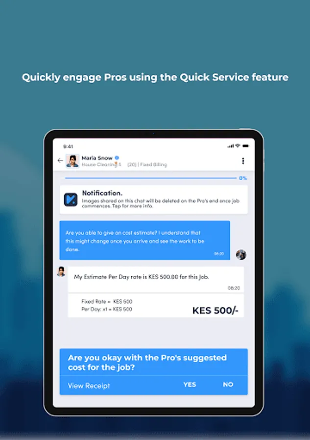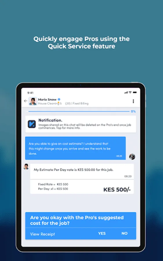 Send private instant messages to hire local professionals for home repairs, events and home services.