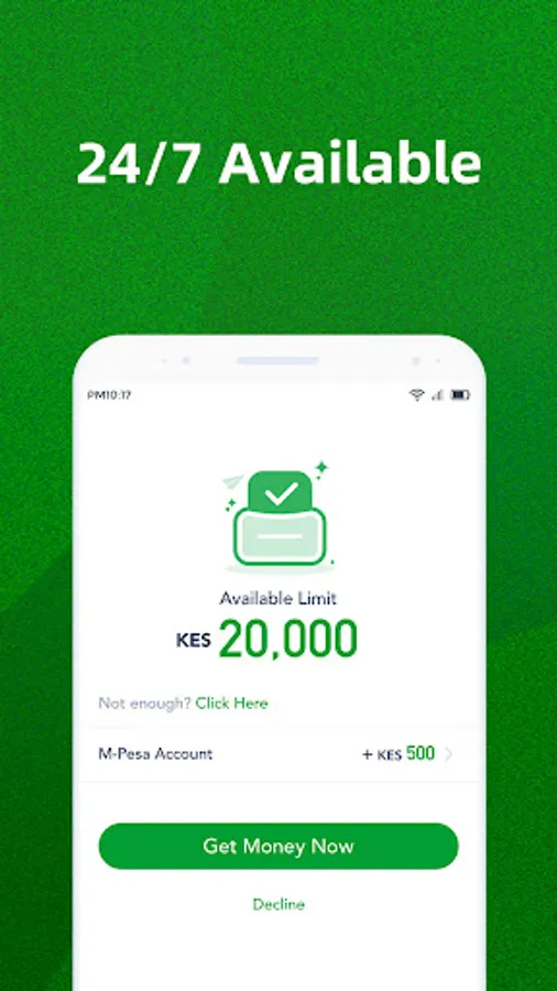 If the loan amount is KES6,000, the loan term is 365days, and the Annual interest rate is 20%, the total interest should be KES (6,000*20%)= KES 1,200. The total repayment amount would be KES 6,000+ KES (6,000*20%)= KES 7,200.